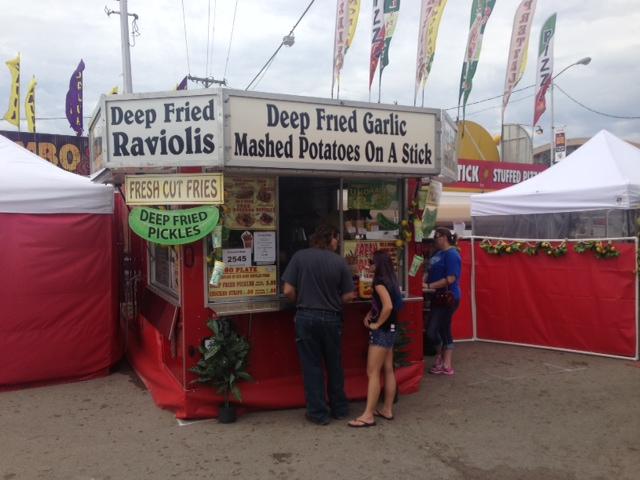 If my memory is correct (no comments please) 30 years ago deep-fried food was pretty much limited to corn dogs and funnel cakes.  I won’t attempt to compile a list of the fried stuff they have now; I think somewhere they sell fried sweat sox on a stick and there is probably a line.  The slogan should and may be “Fry it and They Will Come.”